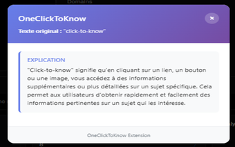 Tillägget har en användarvänlig och lättviktsdesign som fungerar på alla webbsidor. Användare kan snabbt få svar på sina frågor utan att behöva öppna en ny flik eller söka på Google. OneClickToKnow gör det enkelt och effektivt att lära sig och förstå nya termer, vilket gör det till ett värdefullt verktyg för alla som vill förbättra sin kunskap.